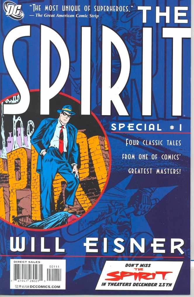 Written by Will Eisner, Art and cover by Will Eisner. With Frank Miller's highly anticipated movie adaptation of The Spirit coming in December, DC Comics presents THE SPIRIT SPECIAL, the perfect introduction to Will Eisner's greatest creation! This low-priced special includes four classic stories: 1947's "Sign of the Octopus," 1949's "Black Alley," and "Sand Saref" and "Bring in Sand Saref," both from 1950. On sale January 7 32 pgs,