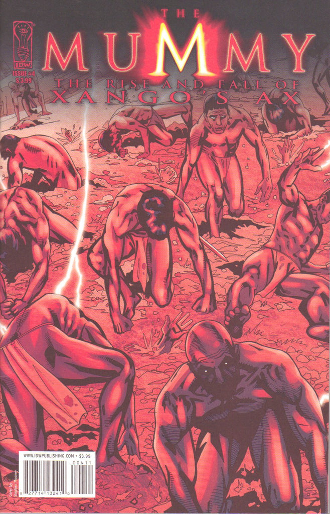 Joshua Jabcuga (w) Stephen Mooney (a & c) This is it! The final prequel issue before this summer's upcoming Mummy blockbuster movie, starring Brendan Fraser! Twists and turns and cliffhangers aplenty as Rick O'Connell goes mano-y-mano-er, make that mano-y-mummy, against the rejuvenated, mythical ax-wielding god of thunder, Xango. What surprises are in store for our band of heroes? Will Rick and son Alex save the fate of humankind before Evie returns home and discovers their recent misadventures? Pulpy madness and the kitchen sink, brought to you by Joshua Jabcuga (Scarface: Devil in Disguise) and Stephen Mooney (Angel: After the Fall).
