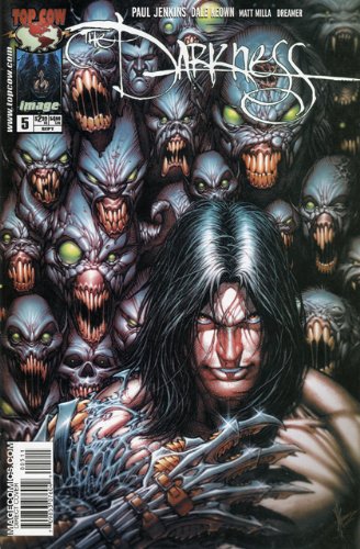 Jackie Estacado has an Achilles Heel: his love for a woman long since murdered by his Uncle Frankie. Jenny's specter still reaches out from the grave to haunt him. Now working under the iron rule of Frankie's Cousin Paulie, Jackie sets about dismantling Paulie's opponents, destroying the last vestiges of the old ways he had tried to protect. And the Darkness watches him take apart what he had sworn to protect with barely disguised glee. There's no escape from the madness, no one to turn to for help... or is there? The Darkness Image New Comic September 2003 Issue #5 . This issue is a must read for any fan, and will make a great addition to any collection. At these heavily discounted prices, supplies will go fast. Please order quickly. Reading is good for the mind and soul.