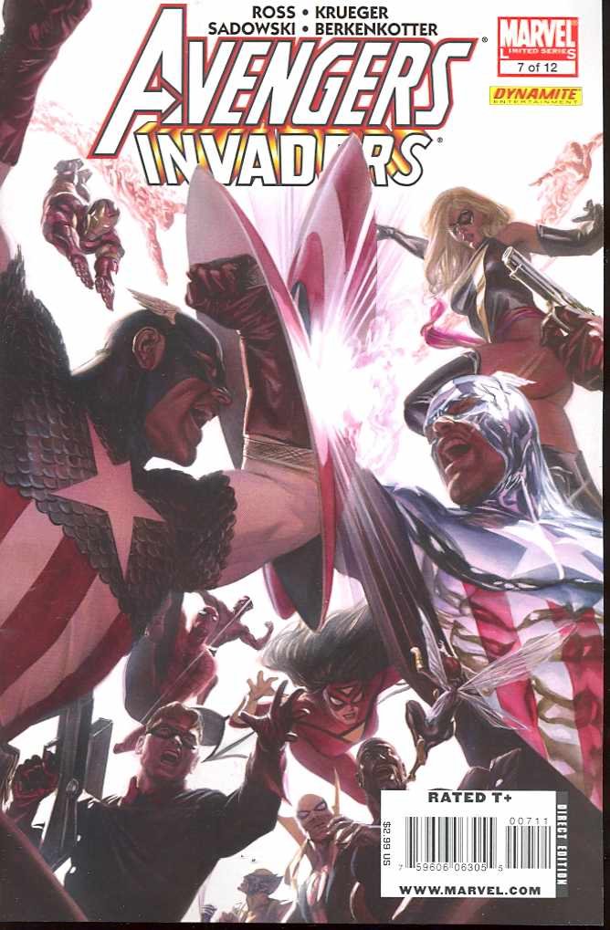 Written by Jim Krueger, Alex Ross, Stephen Sadowski. Marvel's biggest self-contained story of the year continues! Featuring Earth's Mightiest Heroes and spanning the generations from 2008 to the war-torn days of World War II! Surrounded by a trio of enemies they thought long-vanquished, The Avengers are victims of one of the most powerful pieces of technology in the Marvel Universe. Meanwhile, the Invaders find themselves trapped in an alternate reality that promises to destroy its most powerful member as the countdown to Armageddon begins.