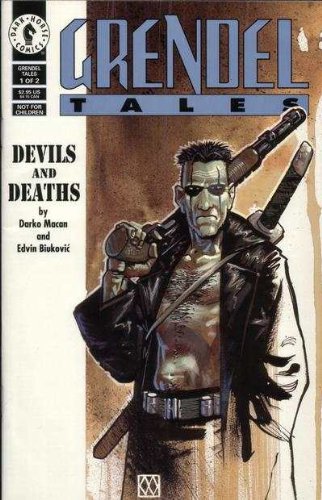Written by DARKO MACAN & MATT WAGNER. Art by EDVIN BIUKOVIC & MATT WAGNER. Cover by MATT WAGNER. Grendel Drago has been fatally contaminated with radiation. But being a soldier and a warrior, he would rather die in battle than in bed. He sets out to fulfill one last mission for his General - kill the mysterious monster on the outskirts of town and die in the blaze of combat. Also in this issue: In Matt Wagner's fully painted back-up feature, the sinister Session Twins are closing in on Dr. Creach and Grendel-Prime. 'Devil Quest' continues with the first chapter of "Meat Machine." Cover price $2.95.