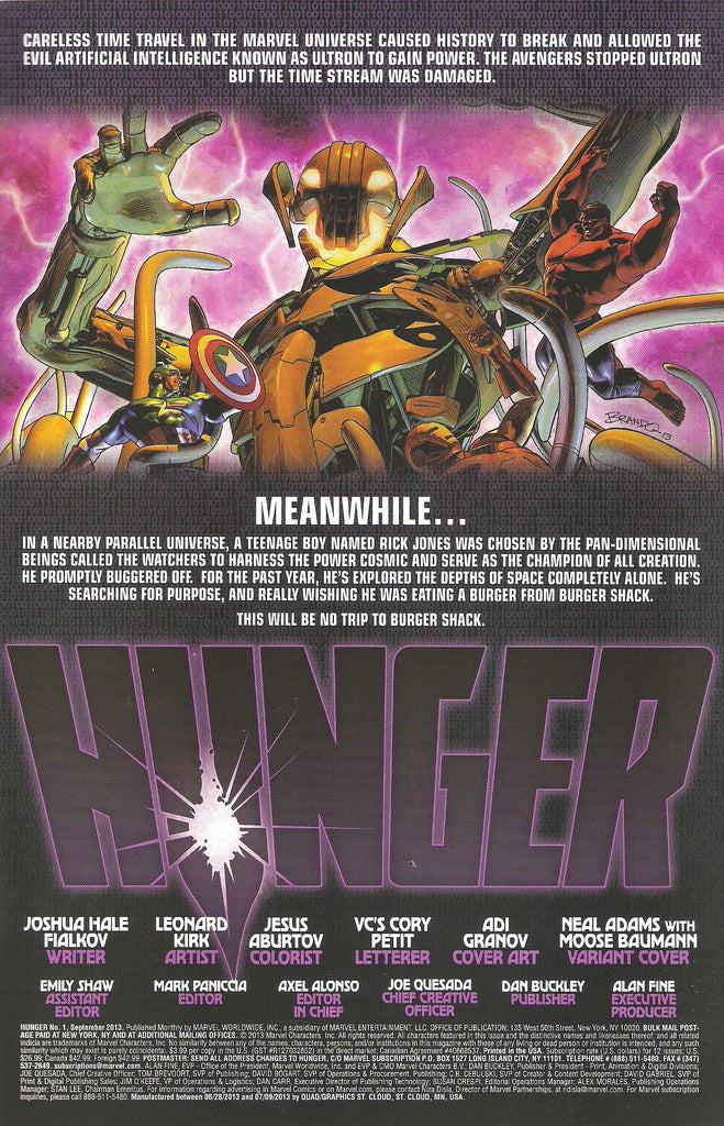 Hunger #1 Age of Ultron Aftermath from 2013 by Fialkov,Kirk & Aburtov in nm