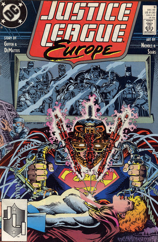 Super controversial issue of Justice League Europe Superman literally depowers Power Girl to save her life. Batman guest stars as well.
