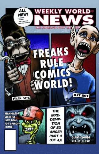The weather forecast for this concluding issue of the Weekly World News miniseries is cloudy with a chance of death, as Chaos Cloud brings down an Emmerich-like level of destruction, while Ed Anger is beset by freaks on all sides! Will he find redemption at last? Or will being proven wrong about Bat Boy and the others be his final legacy?